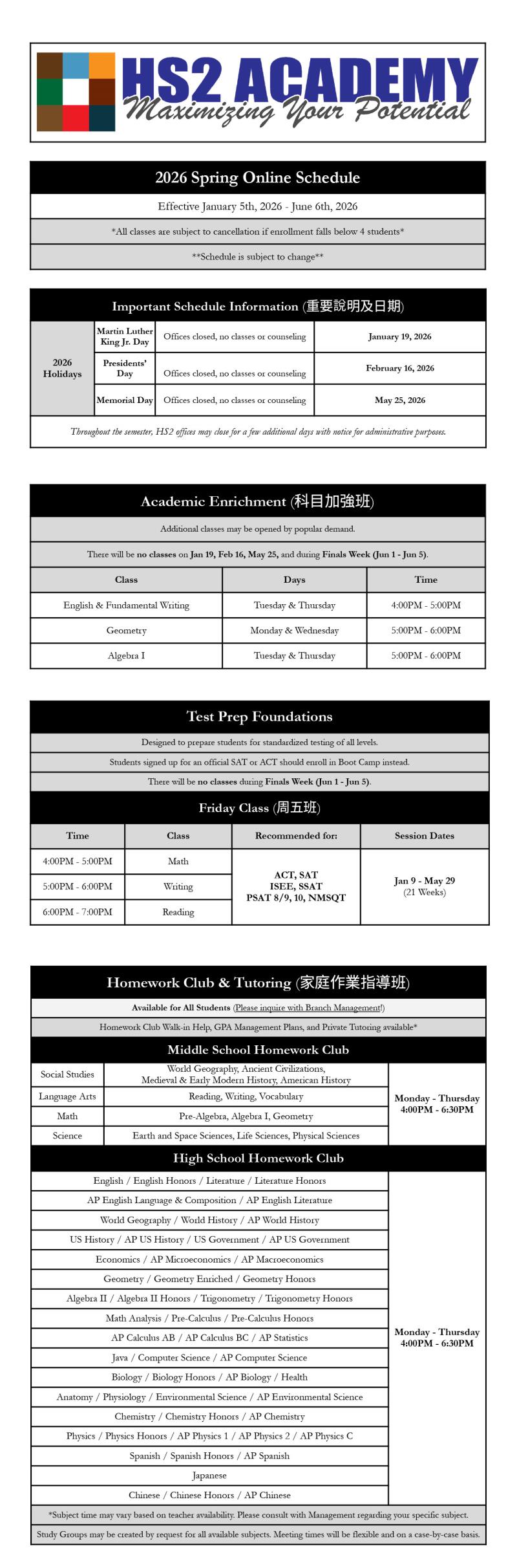 One time payment. If already a registered HS2 student, please unchecked. [+$100]